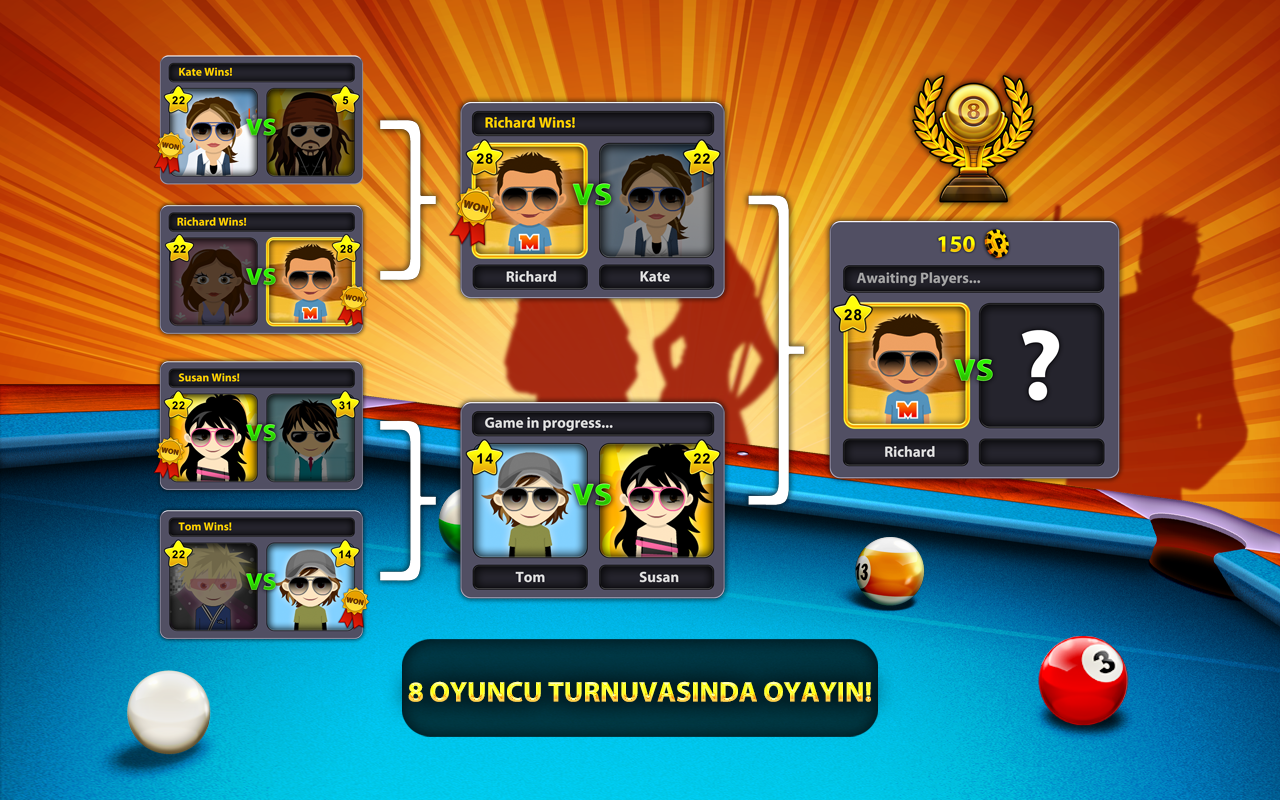 Arkadaşlarınla oyna! Efsanelerle Oyna. En çok oynanan Miniclip 8 Top Bilardo oyununu mobil cihazında oyna ve en iyisi ol!